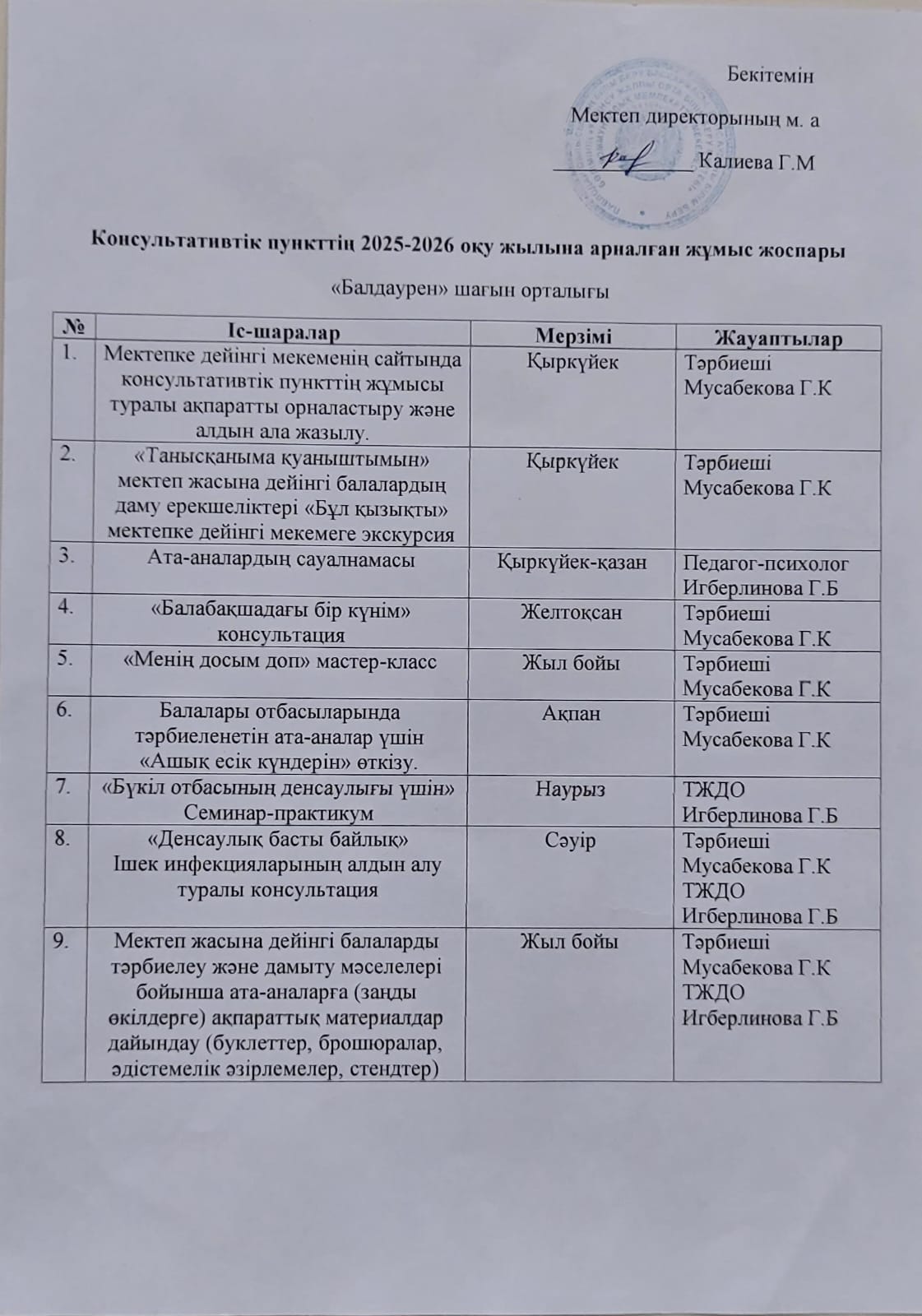 Ата-аналарға арналған консультациялық пункті